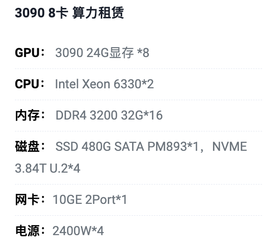 广东3090八卡算力租用价格